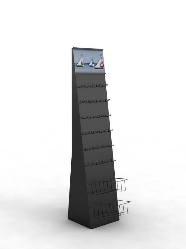 Рекламная стойка для печатной продукции Парус имеет оригинальную наклонную поверхность с перфорацией. На стойке для буклетов размещаются разного вида навесные элементы для удобного представления рекламной продукции: пластиковые карманы, корзины, крючки. Сверху стойки возможно разместить бренд компании или название рекламируемого товара. Стойка может быть исполнена в любом цвете. Используется на выставках, презентациях, в кинотеатрах, супермаркетах, торговых центрах.