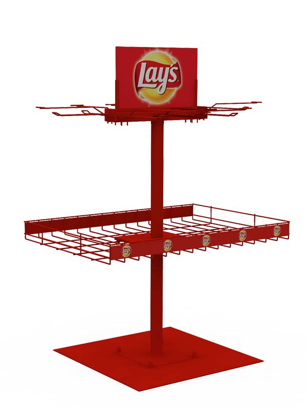Торговая сетчатая стойка служит для демонстрации и продажи чипсов Lay’s, которые производятся компанией Frito-Lay, принадлежащей PepsiCo Inc. с 1970 года. Фирменная стойка высотой 90 см. состоит из основания и вертикально расположенной трубы, на которую монтируется четырехсторонняя корзина. В верхней части навешиваются крючки со всех сторон стойки. Логотип продукции наносится на двухстороннюю площадку.