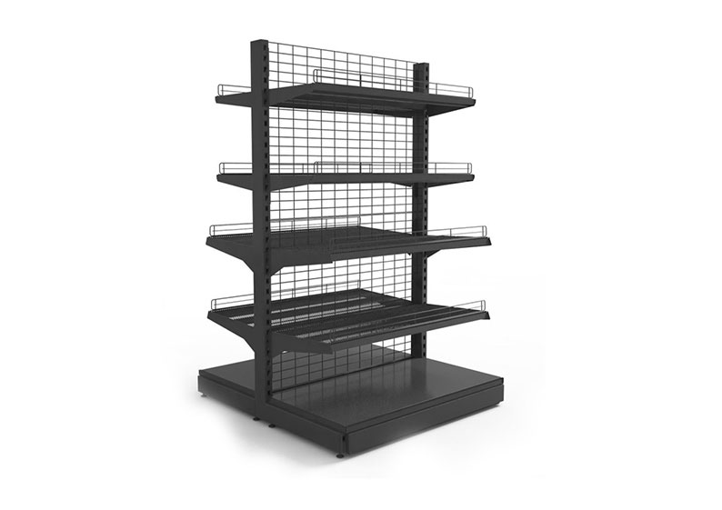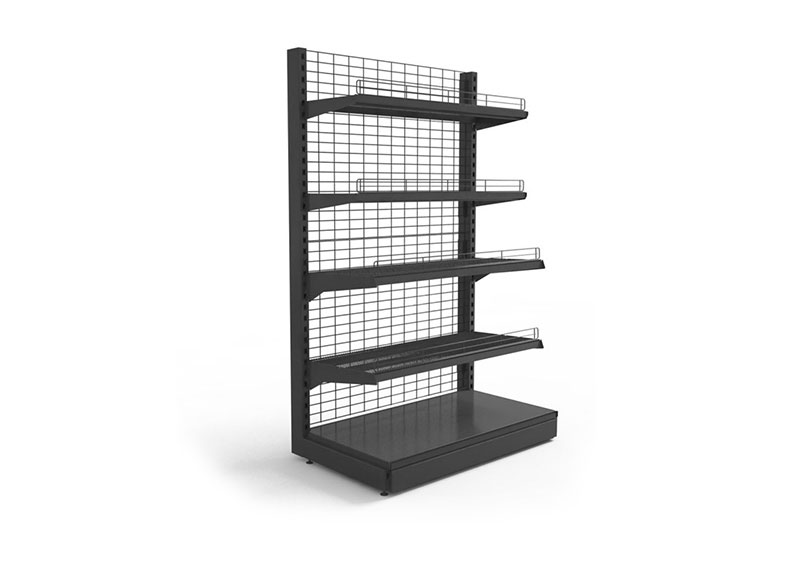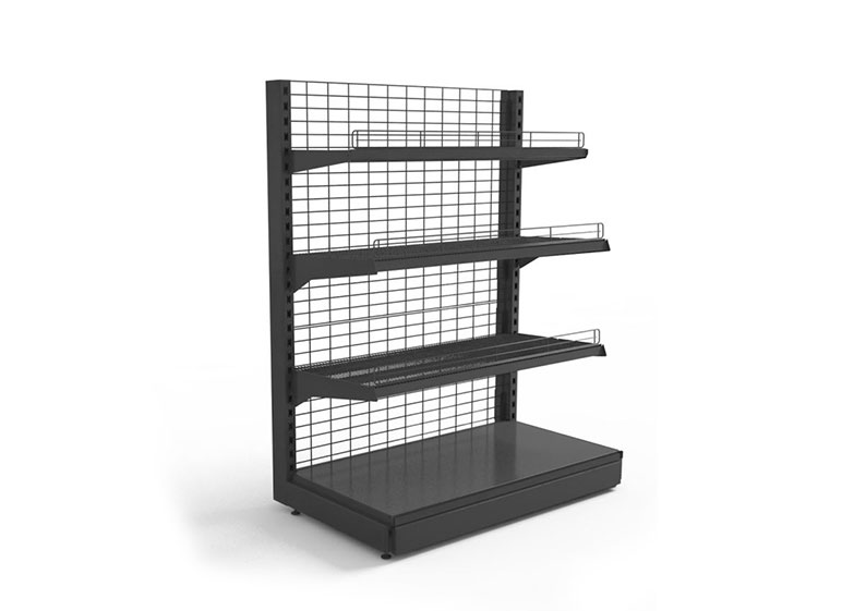 Стеллажи с сетчатыми задними стенками – классические стеллажи для выкладки продукции в магазине (чаще всего обуви). Используется в большинстве магазинов для демонстрации товара благодаря своей практичности и удобству использования. Чаще всего, данное торговое оборудование, различается по высоте самого стеллажа, а ширина и высота полок регулируется самостоятельно. Прозрачная задняя стенка способствует зрительному расширению пространства и отлично подходит для небольших островных магазинов, кроме того, грамотно подобранное расстояние в сетке визуально облегчает конструкцию.