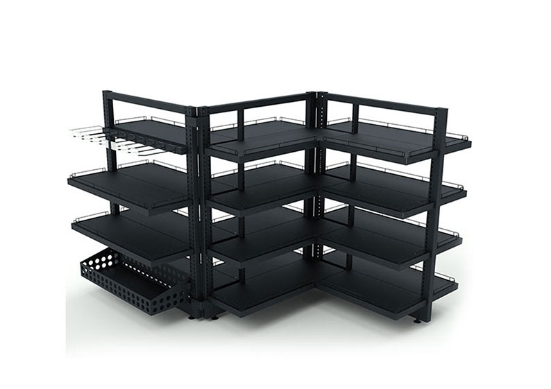 Внешняя торговая стойка имеет полукруглую конструкцию, используется для формирования угла торговых рядов из подобных изделий. Оптимальная прочность конструкции напольной торговой стойки делает её самым практичным решением для магазинов самообслуживания с большой проходимостью. Полки комплектуются проволочными ограничителями. По желанию заказчика торговая стойка для магазина окрашивается в любой цвет согласно палитре цветов RAL.
