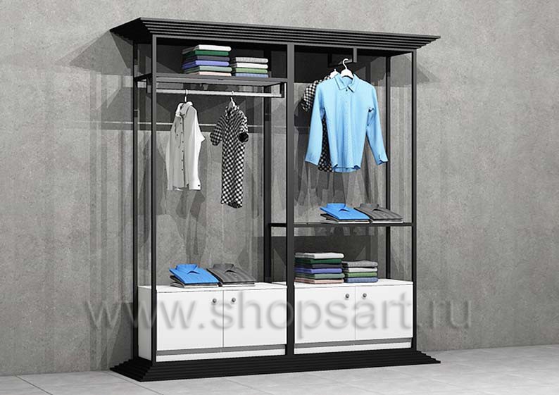 01 ЛК. Стеллаж ЛОФТ для магазина мужской одежды, двойной.
