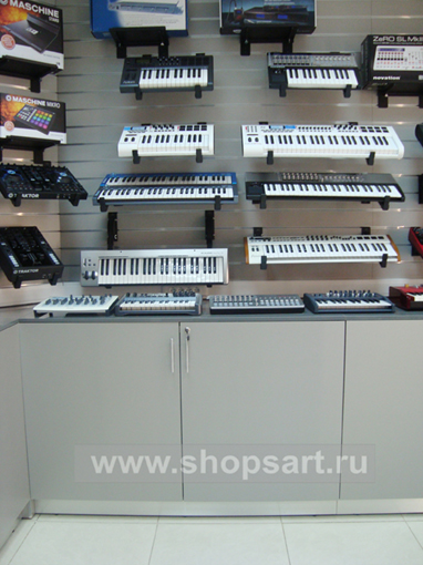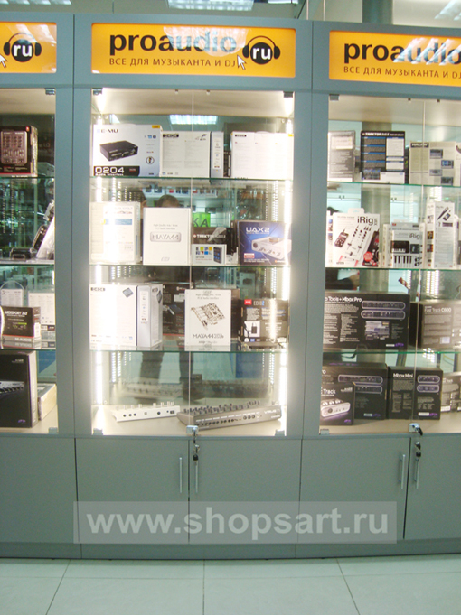 На этой странице Вы можете ознакомиться с фотографиями торгового оборудования в открытом магазине для музыкантов «Proaudio», находящемся в городе Москве. Произвела, поставила и установила в магазине торговую мебель: торговые стеллажи, торговые прилавки, торговые острова, торговые стойки, пристенные стеллажи, торговые шкафы и др. компания ООО «Искусство интерьеров»