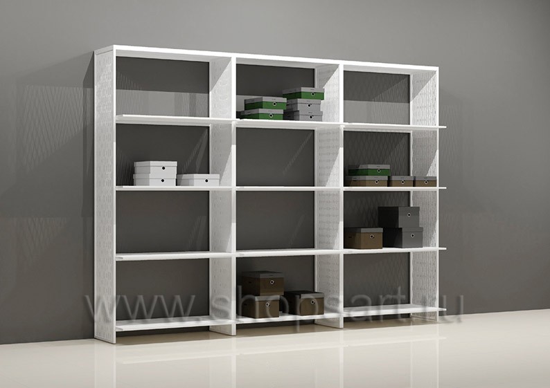 Блок торговых стеллажей предназначен для демонстрации обуви, состоит из трех открытых секций. Конструкция торгового стеллажа выполнена из металлической квадратной трубы 25×25 мм с покрытием порошковой краской белого, матового цвета. Боковые стенки изделия выполнены из сварной, металлической сетки. Габаритные размеры стеллажей и цвет окраски могут быть любыми, по согласованию с заказчиком.