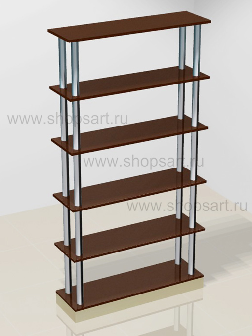 Стеллаж пристенный используется для демонстрации обуви. Торговый стеллаж имеет в своем составе: глянцевые полки на полкодержателях 300мм. (хром); перфорированные стойки на опорах, возможны стойки с креплением к стене; задние панели из ЛДСП; подиум из высокоглянцевого МДФ. В нижней части устанавливается подиум, который можно использовать для выкладки высокой обуви.Подробнее