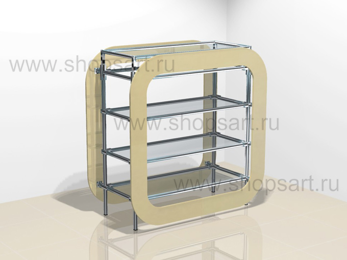 11 КМОБ. Стойка островная, витрина для обуви, со стеклянными полками.