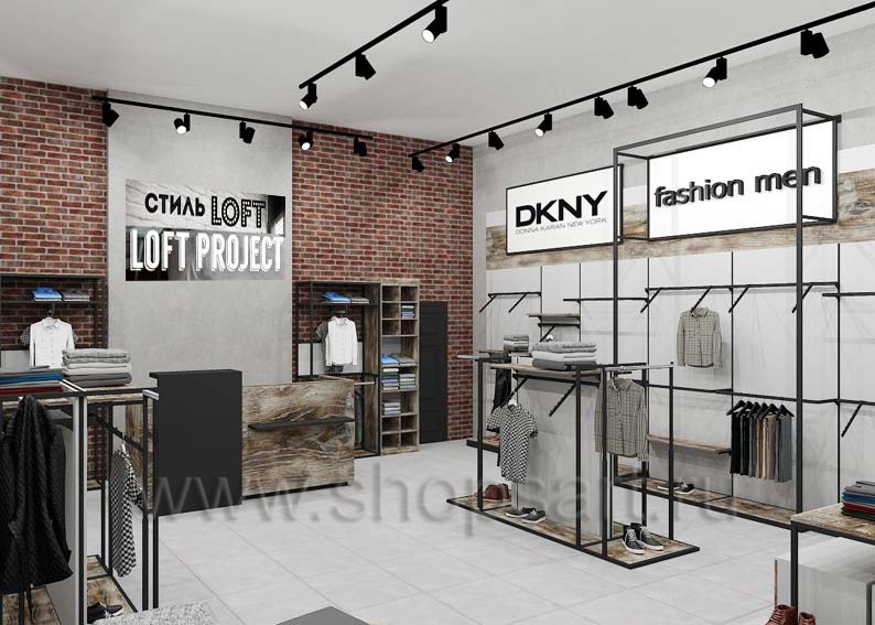 Дизайн проект магазина одежды на основе коллекции торгового оборудования ЛОФТ