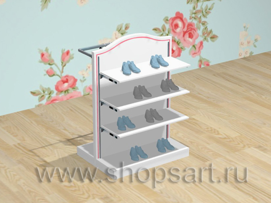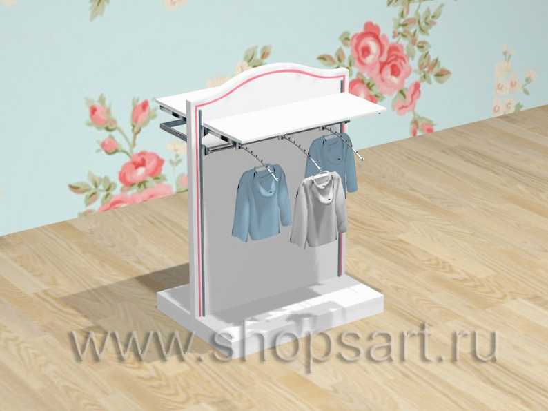 04 CП. Стеллаж для детской одежды с подиумом и двойной навеской.