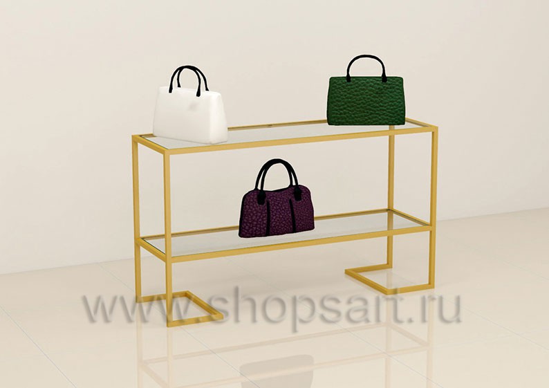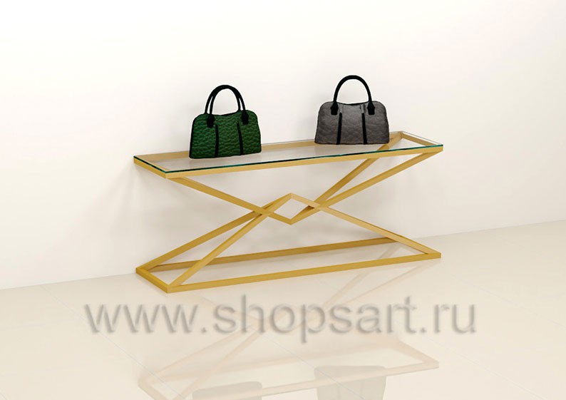 10 ТИФ. Стол для сумок, в магазин, со стеклянными полками.