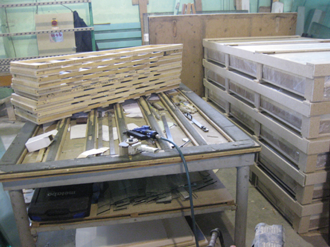 Стекла и хрупкие части торгового оборудования мы упаковываем в короба из ДСП.
