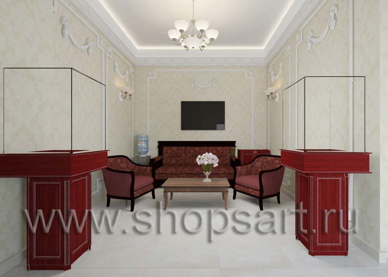 - 3D визуализация дизайн-проекта ювелирного магазина “Октябрь”, г. Москва, Фрунзенская набережная. VIP Зал. Дизайн 12.