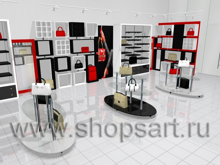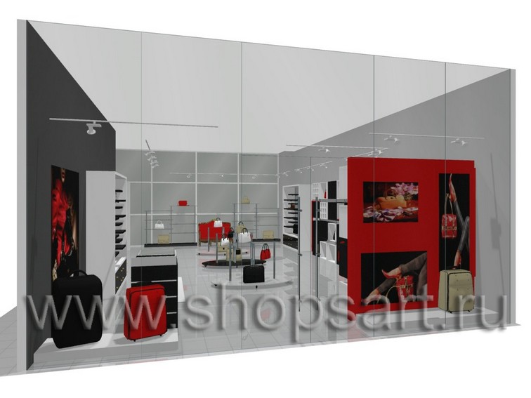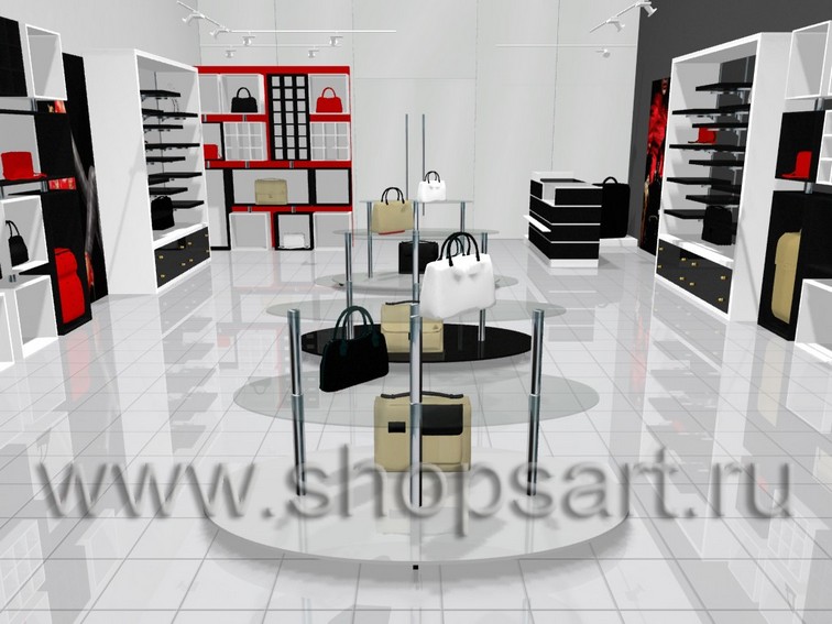 На этой странице Вы можете ознакомиться с дизайном интерьера и дизайном торговой мебели магазина сумок на основе коллекции торговой мебели «БРЕНД». Разработала дизайн магазина сумок и торговой мебели компания «Искусство интерьеров».